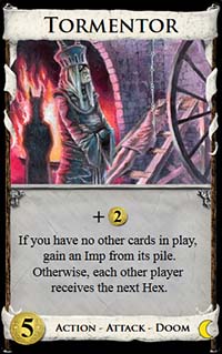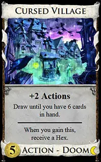 If you already have six or more cards in hand, you do not draw any cards. When you gain Cursed Village, you receive a Hex; since that will often be in your Buy phase, some of the Hexes may not do anything to you. Den of Sin: Since Night is after the Buy phase, normally you can play this the turn you buy it.