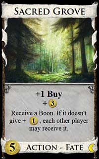 At the start of the game, deal out three Boons face up for Druid. If there are other Fate cards in the same game, those Fate cards will not produce those Boons that game; the deck will consist of the other nine Boons.