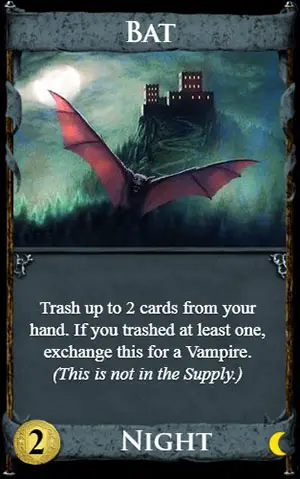 The Vampire is put into your discard pile. If there are no Vampires in their pile, you cannot exchange Bat for one, but can still trash cards.