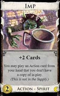 After drawing two cards, you can play an Action card from your hand, provided that you do not have a copy of that card in play.