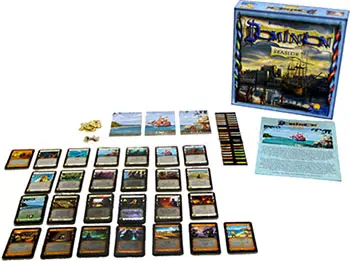 Place player mats not being used in the game back in the box. Place the coins in the Supply when playing with the Pirate Ship cards and the tokens in the Supply when playing with Embargo cards.