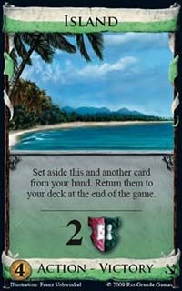 The opposite side allows players to create an organization that fits their needs. Next remove the player mats from their frames. There are 3 for each player: Island, Pirate Ship, and Native Village. The mats are used in the game only when playing with their corresponding Kingdom cards: Island, Pirate Ship, and Native Village.