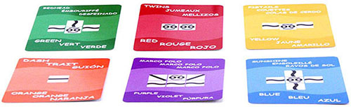 Be the first player to collect a set of six cards - one of each color: one green, one red, one blue, one orange, one purple and one yellow.
