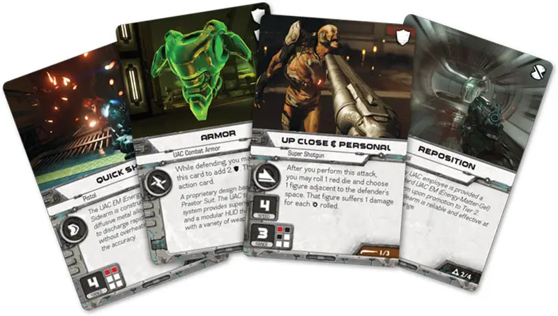 The UAC Mars base uses thick metal doors designed to block heavy weapons fire. Closed doors are represented by a door token placed between exactly four spaces (2 in front, 2 behind).