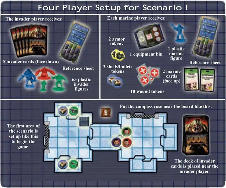 Doom: THE BOARD GAME is played over a series of rounds. During each round, every player receives one turn, starting with the first marine player and continuing clockwise.