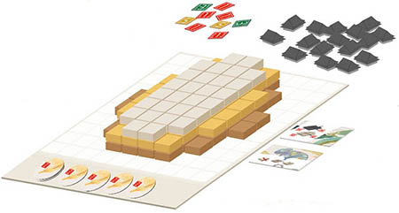 1. Place the Central board corresponding to the number of players in the middle of the table and use all 116 tiles to build the Dragon Castle. All players should do this together. Shuffle all the tiles and place them face up on the Central board, using the castle layout you have chosen.