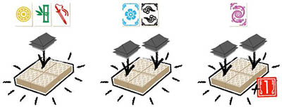 On the other hand, you can never place tiles on top of face-up tiles, nor on face- down tiles where you have already placed a Shrine.