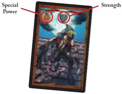 Each player has 4 Adventurers, who each have an attack value printed on the upper center of the card. Thieves and Wizards also have special powers. (The descriptions of the powers are detailed with the rules for sharing treasure).