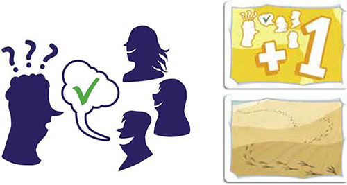 If you need help to correctly remember the next piece of the Dream, ask for help! Teammates must raise their hand to show that they think they can remember. The active player can ask 1 teammate for help, or they can try and remember on their own. They then reveal the next facedown card.