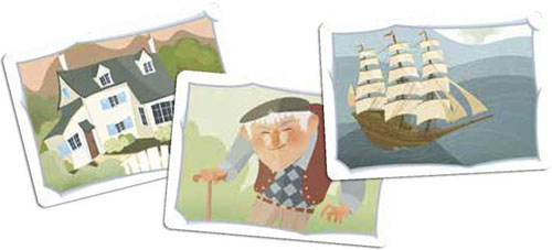 After playing his card, Henry immediately draws a new one from the Dream deck to his hand. Elena adds a card from her hand to the Dream pile: it shows the image of a house. She grins and exclaims,