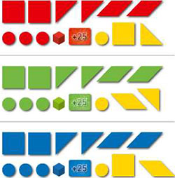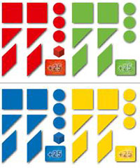 Each player gets one complete set of shapes in one color, and the matching score marker and point token.