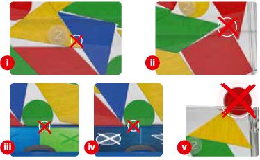 • Edge: Your shape is not allowed to be touching any edges of the drop zone that are marked by symbols of the same color iii or shape iv printed on the side-edge pieces or bottom-edge pieces.