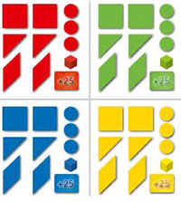 Each team or player gets two complete sets of shapes, one matching score marker, and both matching point tokens.
