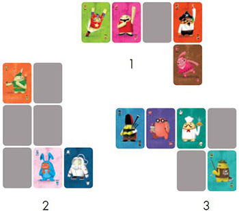 For example, the grey spaces in the three scenarios below indicate all the possible locations you could place a card:
