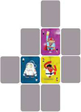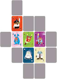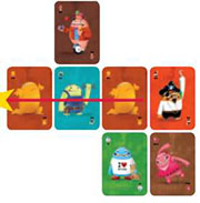 Dweebies will form lines going both down and across. You may collect cards if you place a Dweebie at the end of any line that matches the Dweebie at the other end of the same line. Collect the whole line, including the two end cards, and place them in a face down pile in front of you.