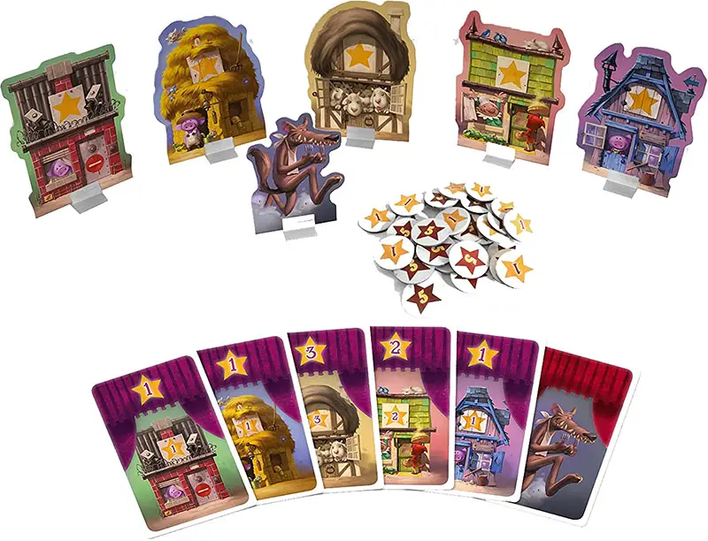 - 5 players: the Wolf / the Kids / Little Red Riding Hood and her Grandmother / two of the Three Little Pigs.