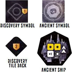 If the hex contains Ancient symbols, put that many Ancient Ship tiles on it, on top of the Discovery Tile.