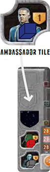 Ambassador Tiles on your Reputation Track are worth 1 Victory Point at the end of the game. Note that your Reputation Track also holds your Reputation Tiles. If the board is full when taking an Ambassador Tile, you may discard Reputation Tiles, returning them to the Reputation Tile bag.