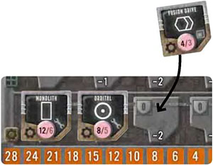 Science cost (move the Storage Marker backwards on the Storage Track) and put the tile on your Player Board on the track of its category (Military, Grid or Nano).