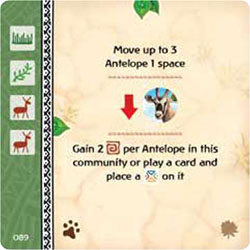 Some effects let you "Move" 1 or more Animal tokens. The effect will tell you which animal you can move and how many spaces the animal(s) can move.