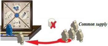 The player returns any resources or money he expends for the trade to the common supply. He then receives resources from the common supply and marks gained power points on the power points track.