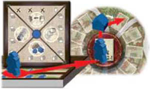 The player controlling the most influence points in a city receives the largest share of the profit. The other players receive money according to their rank, in descending order.