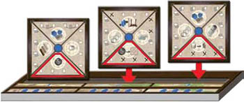 They slide their cards into the slot of their planning board, from left to right and with the selected action pointing downwards.