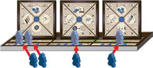 To activate this action, the player must have one of his samurai on a corresponding resource space for each official on his planning board assigned to this action.