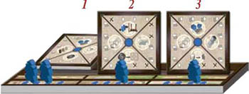 Then, the other players in clockwise direction take their first actions. The players repeat this procedure for their 2nd authorization card (center), then for their 3rd authorization card (right).