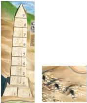 When building the Obelisk, the players players must build stones from bottom to top (all lower numbers must be filled, before a next higher space can be built).
