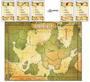 Goods Tokens: During game setup, randomly place one of the goods tokens on each region on the board with a triangle. The player who controls a region with a good token in it has one more of the depicted good.