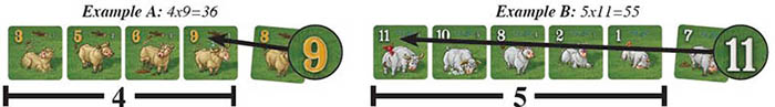 Note: Only after the game is over can you sell single Cattle Tiles. (During the course of the game, you can only sell Herds with at least 2 Cattle).