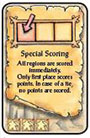 - Special scoring is executed according to the same rules as general scoring, i.e., players score points for first, second, and third places, and the King's region and home region bonuses can be awarded.