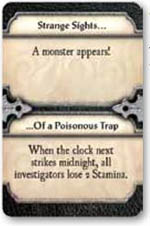 Example: After advancing the Clock to midnight, the active player resolves all At Midnight effects and then draws the Mythos card shown at left.