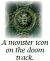 When a Doom token is placed on a space with a monster icon, a monster appears. When the last space on the Doom track has a token placed on it, the