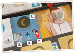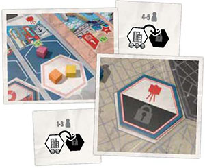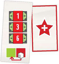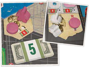 - If an amount of money is listed, place the cube inside the hexagon without the Income symbol of the corresponding Safe House display.