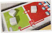 - If an amount of money is listed, place the cube inside the white hexagon without the Income symbol of the corresponding Business display.