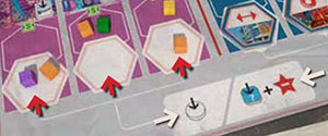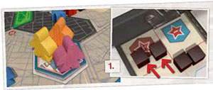 - If the Income symbol is listed, place the cube inside the hexagon with the Income symbol of the corresponding Safe House display. Then, immediately receive Income.