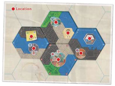 If you end your movement on a Subway or Helicopter Location, skip Step 3. Other than the Subway and the Helicopter, another 8 different Locations can be find in the game: