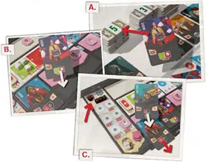 A.Take the chosen card and place it on the leftmost empty Contact card space of your Player board (contains no other Contact card or an Asset tile). If the leftmost space is not empty, you cannot choose this option