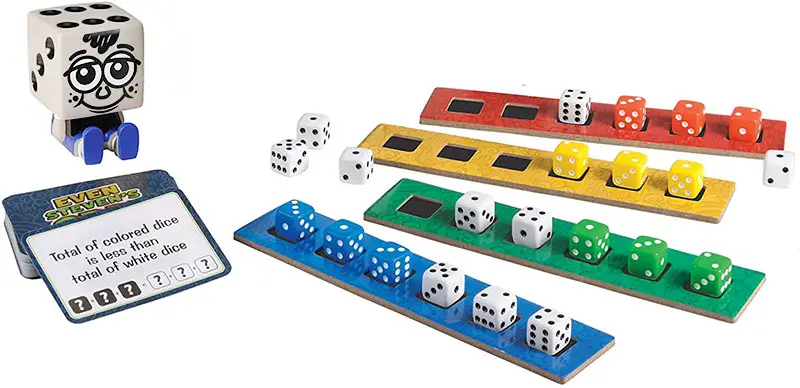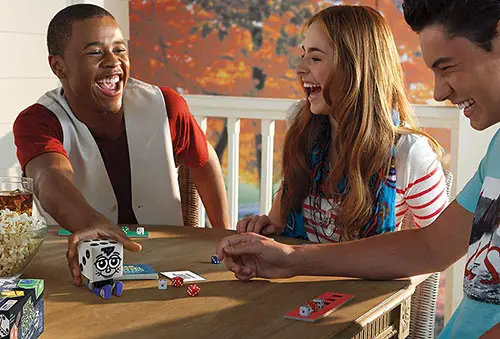 Choose one player to flip over and read aloud one dice challenge card. (For younger players, use cards marked with a star in the upper right corner).