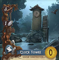 When you play the Clock Tower, place 3 point tokens on it. Before you bring back your workers during a Prepare for Season action, remove 1 point token from the Clock Tower and activate one of the basic or Forest locations where you have a worker deployed. Any points left on the Clock Tower at game's end will count towards your point total.