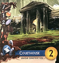 Gain 1 twig, 1 resin, or 1 pebble every time you play a Construction into your city. You do not gain resources for playing this Courthouse.