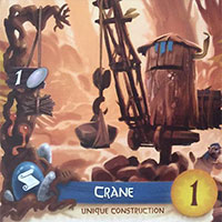 When you play a Construction, you may discard this Crane from your city to decrease the cost of the played Construction by 3 of any resource. You do not gain the 3 resources. This card cannot be combined with any other card-playing abilities-including the Inn, any forest tiles that allow you to play a card, or cards like the Dungeon.