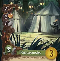When you place a worker here, play a Critter or Construction from the Meadow cards for 3 less resources of your choice. You do not gain the 3 resources. You gain 1 point token if an opponent visits your Inn. Solo Game: you may visit the Inn in Rugwort's City and Rugwort gains 1 point token.