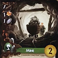 Storehouse: When played and during Production, take from the supply and place either 3 twigs, 2 resin, 1 pebble, or 2 berries on this card. Also works as a location to place a worker and take all of the resources on the card.