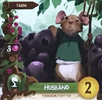 Shares a space with a Wife, so combined they only take up 1 space in your city. If you have a Farm in your City and this Husband is paired with a Wife, then this card gives you 1 of any resource when played and during Production. May only share a space with 1 Wife.