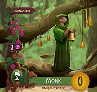 When played and during Production, you may give up to 2 berries to an opponent to gain 2 point tokens for each berry you give. Also unlocks the 2nd Monastery room.