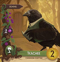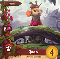 When playing a Critter or Construction, you may replace 1 of any resource in the cost with 1 of any other resource you have. Example: If a card costs 2 berries, you may pay 1 berry and 1 twig instead.