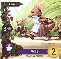 Shares a space with a Husband, so combined they only take up 1 space in your city. At game end, worth 3 points if paired with a Husband. May only share space with 1 Husband.